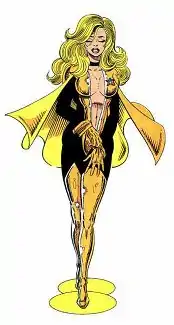 Aleta later appeared in Guardians of the Galaxy as a member of the titular superhero team. Writer/artist Jim Valentino soon redesigned her appearance, more clearly defined her powers, and separated her from Starhawk. Valentino explained, "I didn't want Supergirl - and she was, basically, Starhawk in drag. I saw several things in her: She would be the statuesque female that fanboys seem to require ... She would be a bit above everyone (Yondu referred to her as a 'goddess', and if you look, you'll note that her feet never touch the ground). She would also play as a catalyst for both Starhawk and Vance."[1]