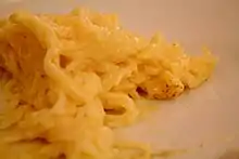 Vermicelli was probably brought to the Iberian Peninsula by the Moors in the 8th or 9th century.[5] It remained in Portugal and incorporated into Portuguese cuisine, and began to designate the mass of very fine yarns, with which a typical Christmas candy, present in almost all regions of the country, is prepared. The name aletria itself has disappeared in Spain, remaining only in the region of the ancient Kingdom of Murcia.[6] It is however noteworthy that Catalan cuisine has enriched itself a lot with products promoted by the Arabs, including vermicelli.[7]