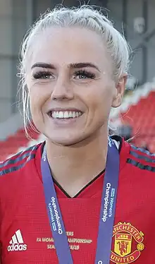 Alex Greenwood (born 7 September 1993) is an English professional footballer who plays for Women's Super League club Manchester City and the England national team. Primarily a left-sided defender, she plays as both a centre-back and a left-back. Greenwood began her senior career at Everton, Notts County and Liverpool, before playing for Olympique Lyonnais and winning Division 1 and the Champions League with the club. She also captained Manchester United, winning the Championship in their inaugural season. Greenwood is known for her tackling, positional play and passing; as a left-footed player she is a set-piece specialist, who often takes penalties, free kicks and corners.