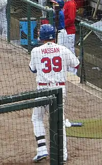 ![]() Hassan with the Oklahoma City Dodgers, triple-A affiliates of the Los Angeles Dodgers, in 2016 | |