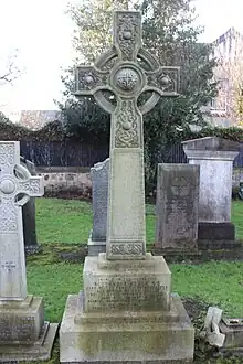 Asher fell ill while in London as he was leaving the House of Commons from an evening sitting in July 1905. He remained in bed for the following month, and following a worsening of his condition on 31 July, Asher became eager to return home to Scotland.[2] He returned home to Edinburgh on 4 August where he died at his residence, Beechwood House in Corstorphine, the following day. He is buried in Corstorphine churchyard in the west of the city. The granite Celtic cross marking the grave lies to the west of the church.