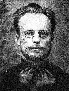 Alexander Konstantinovich Bogomazov (Russian: Александр Константинович Богомазов) or Oleksandr Kostiantynovych Bohomazov (Ukrainian: Олександр Костянтинович Богомазов; March 27, 1880 – June 3, 1930) was a Ukrainian painter, cubo-futurist, modern art theoretician and is recognised as one of the key figures of the Ukrainian avant-garde scene. In 1914, Oleksandr wrote his treatise The Art of Painting and the Elements. In it he analyzed the interaction between Object, Artist, Picture, and Spectator and sets the theoretical foundation of modern art. During his artistic life Oleksandr Bohomazov mastered several art styles. The most known are Cubo-Futurism (1913–1917) and Spectralism (1920–1930).