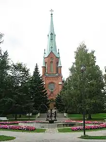 The Alexander Church (Finnish: Aleksanterin kirkko; Swedish: Alexanderskyrkan) is a stone church in Tampere, Finland, and it is part of the Tampere Cathedral Parish. It is located in the Kaakinmaa district in the city center of Tampere, on the edge of the Hämeenpuisto park along the Pirkankatu street. The church, designed by architect Theodor Decker, was built of brick between 1880 and 1881. It is named after Emperor Alexander II of Russia. The church is surrounded by Pyynikki Church Park (Pyynikin kirkkopuisto), a former cemetery.[1][2]