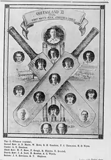 - ↑ Unidentified (1926), Queensland XI team for Sheffield Shield match against New South Wales, Brisbane, Queensland, 1926, John Oxley Library, State Library of Queensland, retrieved 9 January 2017