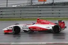 For the 2012 Formula One season, he joined Caterham F1 as a test driver alongside reserve driver Giedo van der Garde.[7] At the Spanish round he drove Heikki Kovalainen's car in the first practice session, becoming the first American to drive in a Formula One session (during a race weekend) since Scott Speed at the 2007 European Grand Prix.[12] In 2013, he drove for Caterham in the first practice session of the Canadian Grand Prix and at Silverstone in July for the young driver test.[13][14] Later in the season, he again participated in the first practice session at the United States Grand Prix, his home race.[15] In 2014, he drove the Caterham in the first practice session of the Canadian Grand Prix.[16] Rossi departed Caterham following the departure of Tony Fernandes and the entrance of new Swiss and Middle Eastern investors in July 2014.[9][17]