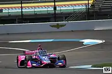 Because the deal was finalized so late, Rossi missed the majority of preseason testing, only getting to complete one session at Sebring International Raceway.[49] Rossi made his IndyCar debut at the season-opening Grand Prix of St. Petersburg, qualifying in the rear of the field in 19th[50] and finishing as the highest-placed rookie in 12th.[51] Rossi then made his oval debut at the next race in Phoenix, running as high as seventh before brushing the wall in the final laps of the race.[52] The highlight of Rossi's first season with the team was winning the Indianapolis 500 after starting from the 11th position on the grid.[53] Rossi was the top rookie in qualifying for the race and led the final few laps as the cars ahead of him on track ran low on fuel and pitted. Rossi managed his fuel over the final stint to win, then ran dry after the finish and had to be towed to victory lane.[54][55] Rossi would later earn a second top-five finish at the season finale at Sonoma Raceway.[56] Rossi was named the series' 2016 Rookie of the Year on September 19.[57]