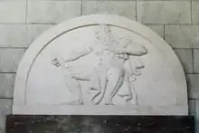 Alexander Sambugnac was a Yugoslav-American artist and sculptor. He was born April 22, 1888, in Zimony, Kingdom of Hungary (today Zemun, Serbia). He studied at the Royal Academy of Fine Arts in Budapest, Hungary and Munich, Germany where he studied under Franz von Stuck. In 1913, he went to Paris and studied with Antoine Bourdelle. His sculptures were commission for U.S. Post Offices for a Great Depression era program overseen by the U.S. Treasury Department. His work is also at the Museum of Fine Arts in Budapest, at a cathedral in Vienna, Austria and at the capitol in Havana, Cuba.[1][2] He became a naturalized U.S. citizen in 1938 and was a member of the Architectural League of New York and the National Sculpture Society.[1] Sambugnac's sculptures are at the David W. Dyer Federal Building and United States Courthouse where he crafted two cast-stone lunettes in 1938. The low-relief panels portray two allegorical figures representing themes of the spirit of justice on the lintels above the leather-covered doors. Love and Hope shows a young woman playing the lyre, while Wisdom and Courage depicts a seated figure gazing at a tablet of the law.[3]