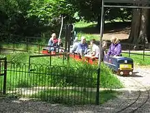 The park features several small water reservoirs that provide popular locations for leisure fishing within the town. The lower area of the park has several public facilities including a lake, war memorial, bowls green, information point, toilets, café, events areas, bandstand and adventure playground. There is a water thoroughfare all around the park linking the reservoirs. There is a 7+1⁄4 in (184 mm) gauge miniature railway at the northern end of the park.