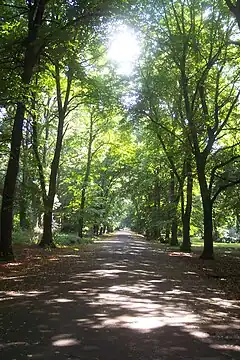 Alexandra Park is a 60-acre (24 ha) park in Manchester, England, designed by Alexander Gordon Hennell,[1] and opened to the public in 1870.[2] The lodge and gateways are the work of Alfred Darbyshire. The park was developed by Manchester Corporation before the area was incorporated into the city, the site being purchased in 1864 from William Egerton, 1st Baron Egerton.[2] The roads to the East and West sides of the park were named Princess Road and Alexandra Road, also in honour of Princess Alexandra.