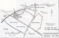 Alexandra Park Aerodrome was the second purpose-built aerodrome in the Manchester area in England. The site was chosen by the War Department in 1917 because of its open agricultural nature, and lay between the neighbouring districts of Fallowfield, Chorlton-cum-Hardy, Whalley Range, Withington and West Didsbury, at the junction of Princess Road and Mauldeth Road West, three miles south of Manchester's city centre: the land was owned by the Egerton Estate.[1] The aerodrome's brief existence is commemorated on a plaque in the sports pavilion at Hough End Playing Fields, which now occupy part of the site. A commemorative plaque was unveiled on 7 July 2007 to mark the 90th anniversary of the aerodrome and is located in the grounds of No. 184 (Manchester South) Squadron, Air Cadets, in Hough End Crescent.