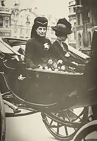 ![]() Queen Alexandra and Princess Victoria driving to the Mansion House on the first Alexandra Rose Day in 1912 | |