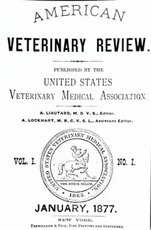 On March 20, 1876, the USMVA, which preceded the American Veterinary Medical Association, launched the publication of the American Veterinary Review. Alexandre Liautard was made chief writer, a post that he occupied until 1900, he was also the editor. In 1881, the Association donated it to him,[33] in recognition of the work he had accomplished for the Review and for the profession. According to J. Fred Smithcors, the American veterinary profession historian, by taking over control of the Review, he was then able to express his ideas and his professional development program « totally independently » :