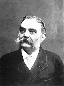 As early as 1880, during an outbreak of contagious bovine pleuropneumonia, Liautard urged the federal government and the States within the Union to set up a health program for the control of infectious diseases.[35] In 1881, he demanded the creation of State veterinarians.[36] This epidemic was so serious that it resulted in an embargo by the British government prohibiting the export of American cattle to Great Britain and Canada. In 1883, this embargo led the federal authorities to create a veterinary service within the USDA,[37] to eradicate the disease, entrusting its direction to Daniel Elmer Salmon who, in 1884, made it the Bureau of Animal Industry. Liautard strongly encouraged his students to become involved or take a position in this newly created public service and would, if necessary, defend them. Thus in 1889, he spoke out vehemently against what he called the « political guillotine » used on public service veterinarians, victims of the spoils system which could result in their dismissal, in response to political changes, without any consideration of their competence.[38]