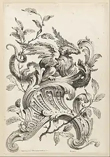 etching on white laid paper, Winged Griffon on a Rocaille Bracket, from Premiere Partie Diverse Ornements by Alexis Peyrotte, Cooper–Hewitt, National Design Museum, 1745