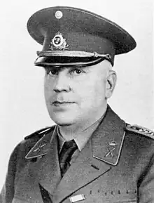 Meyerhöffer became an underlöjtnant in Norrbotten Regiment on 31 December 1913 and was promoted to lieutenant on 1 January 1917. Meyerhöffer served as a regimental adjutant there from 1919 to 1922 and from 1922 to 1924 he was a student at the Royal Swedish Army Staff College. He then served as an aspirant in the General Staff from 15 October 1925 to 1927 and he became captain in Norrbotten Regiment on 15 November 1928.[1] Meyerhöffer was a city council (stadsfullmäktige) member in Boden from 1930 to 1932 and was an agent of the King in Council in Norrbotten Shooting Association (Norrbottens skytteförbund) from 1930 to 1934 as well as a member of the Norrbotten County Council from 1930 to 1938. Meyerhöffer was a member of the Andra kammaren between 1933 and 1936 (member of Andra kammaren's third temporary committee in 1933, of Andra kammaren's first temporary committee from 1934 to 1936). He then became a major of the Jämtland Ranger Regiment on 11 December 1936. He was promoted to lieutenant colonel there and appointed contingency officer in the staff of the 2nd Army Division (II. arméfördelningen) on 1 October 1939. Meyerhöffer was head of this staff from 1941 to 1942 and commanding officer of the I 35 field regiment from 8 May to September 1942. On 1 October 1942, Meyerhöffer was promoted to colonel and appointed regimental commander of the Life Regiment Grenadiers.[1]