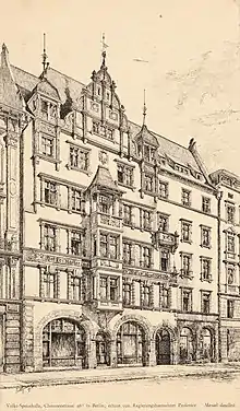 - 1889–1891: building housing a soup kitchen (Volkscafé- und Speisehallen-AG), Neue Schönhauser Straße, Berlin