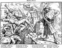 Alfred Rethel died on December 1, 1859, in Düsseldorf[2] from the effects of a brain disease. In his last years, his brother Otto Rethel (1822–1892) took care of him, as well as his young wife Marie Grahl, the daughter of August Grahl, and their daughter Else Sohn-Rethel.