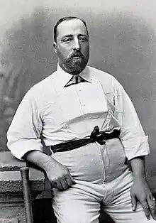 Alfred Shaw (29 August 1842 – 16 January 1907) was a Victorian cricketer and rugby footballer, who bowled the first ball in Test cricket and was the first to take five wickets in a Test innings (5/35).[1] He made two trips to North America and four to Australia, captaining the English cricket team in four Test matches on the all-professional tour of Australia in 1881/82, where his side lost and drew two each. He was also, along with James Lillywhite and Arthur Shrewsbury, co-promoter of the tour. He also organised the first British Isles rugby tour to Australasia in 1888.