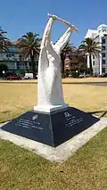 In 1985, a monument named as the Victoria Cross Monument was erected and dedicated "In memory of all Australians who died in war so that we may have peace". The monument depicts a white sculpted figure of a soldier bearing a rifle above his head and was designed by Peter Schipperheyn. It lists Victoria Cross recipients from St Kilda including Albert Jacka on the right side and the titles of conflicts with numbers of St Kilda dead on the left side.[9]