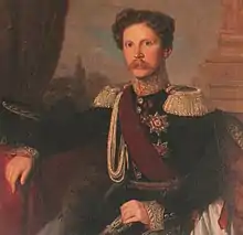 On 19 March 1840, he married Princess Marie Friederike Charlotte of Württemberg (1816–1887).[4] Princess Marie was a daughter of King William I of Württemberg and Grand Duchess Catherine Pavlovna of Russia (the fourth daughter of Tsar Paul I of Russia and Duchess Sophie Dorothea of Württemberg).[5] Reportedly, the marriage, was an unhappy one, as was his sister-in-law Sophie's marriage to King William III of the Netherlands.[6] Marie's younger half-brother, Charles, became King in June 1864 following the death of her father.[7]