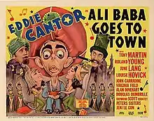 Ali Baba Goes to Town is a 1937 American musical comedy film directed by David Butler and starring Eddie Cantor, Tony Martin, and Roland Young. Cantor plays a hobo named Aloysius "Al" Babson, who walks into the camp of a movie company that is making the Arabian Nights. He falls asleep and dreams he is in Baghdad as an advisor to the Sultan (Young). He organizes work programs, taxes the rich, and abolishes the army, in a spoof of Roosevelt's New Deal. This film was the second of three in which Shirley Temple and Cesar Romero appeared together, second was Wee Willie Winkie (1937) and The Little Princess (1939).[1]