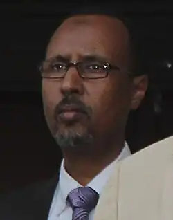 He received the endorsement of former Puntland Interim Vice President Mohamed Ali Yusuf "Gaagaab", who dropped out of the race on 2 January 2014.[3] The first round of voting saw 8 of the 11 presidential contenders eliminated from the running.