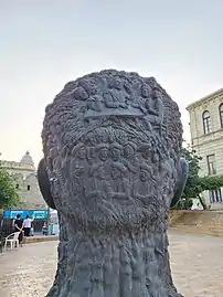 Architects Sanan Salamzade and Jahangir Mammadov commissioned me to create a statue of Aliagha Vahid in 1989. Having thought about this a little bit, I made a model of the statue out of plasticine. When we look at the appearance of the statue, we see different episodes separately. It depicts Vahid's wedding party. He is attending his wedding. On the left side of the head is a mugham trio, which is equal to the size of its ear. This is a sign of the inseparability of the national music, mugham, and ghazal. On the other side is Vahid's funeral: Women in headscarves are mourning. At the back of his head, friends and colleagues of the poet are reciting poems and singing ghazals. Aliagha Vahid, Huseyn Javid, Mikayil Mushfig, Jafar Jabbarly, Azer Buzovnaly, Sattar Bahlulzade are also around the table. As Vahid was a lover of Fuzuli, the image at the bottom of the head depicting the assembly is an evidence of that. We human beings - both geniuses and ordinary people - are dust and to dust we will return. In the statue, the poet's head takes root, growing like a tree. The world is falling apart and changing caused by earthquakes, but the Earth remains forever. These trees are also growing on it. This is what is Vahid’s secret. The philosophy of life of a ghazalkhan.
