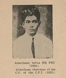 Aliarcham (c.1901-1933) was a Sarekat Islam and Indonesian Communist Party party leader, activist and theoretician in the Dutch East Indies.[1][2] He was a major figure behind the PKI's turn to more radical policies in the mid-1920s.[3] He was arrested by Dutch authorities in 1925 and exiled to the Boven-Digoel concentration camp, where he died in 1933. He became a well-known Martyr, especially among Communists and Indonesian nationalists.[4]