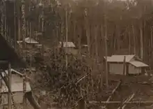 Aliarcham and fellow exile Madjoan arrived in Merauke on January 10.[32] At that time the exiled Surakarta communist Haji Misbach was also in Merauke but the two were forbidden to meet.[1] Political prisoners were generally not kept in Merauke for long out of fear they would interact with locals or with sailors at the port; Aliarcham, Darsono and Mardjoan were soon ordered to be sent to Okaba instead.[33][34] Aliarcham would remain in Okaba for more than a year. During that time, his wife and son came to live with him there, and would subsequently follow him to wherever else he was sent, until 1929 when she became pregnant with their second child.[1] After Okaba, in the fall of 1927, Aliarcham was sent to the Tanahmerah camp (Boven-Digoel), where many of the PKI members implicated in the failed 1926 uprising in Banten had been sent. The prisoners there organized themselves into Kampung councils which sent delegates to the Centrale Raad Digoel, which negotiated with camp authorities for better treatment; Aliarcham was a "delegate", as were many of the other PKI leaders interned there.[26][35] That organized resistance got Aliarcham and others deported to a new camp after a few months, at Tanahtinggi, about six hours by boat from Tanahmerah.[36][35] That more remote camp was reserved for "irreconcilable" communist prisoners who would not act deferential to the authorities or accept paid work as "functionaries" or regular labourers.[4][37][38][39] Conditions were very poor there, with Malaria and other diseases rampant among the prisoners.