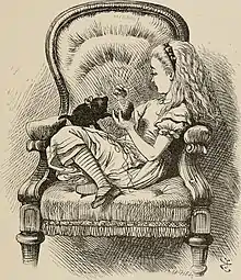 The Alice band is said to have originated in the period around 1871, following the publication of Lewis Carroll's novel Through the Looking Glass; at any rate, the name of the Alice band certainly comes from Carroll's heroine.[1] In John Tenniel's illustrations for this book, Alice is shown wearing a ribbon which keeps her long hair away from her face.[2]
