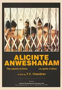 Alicinte Anveshanam (English: The Search of Alice) is a 1989 Malayalam-language film written and directed by T. V. Chandran.The story revolves around a woman named Alice(Jalaja) who goes in search of her missing husband.