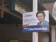 Alicja Danuta Olechowska (born 10 February 1956) is a Polish politician. She was elected to the Sejm on 25 September 2005, getting 6395 votes in 20 Warsaw district as a candidate from the Civic Platform list.