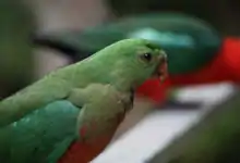 Classified in the subfamily Psittacinae within the true parrot family, the genus Alisterus was described by Australian amateur ornithologist Gregory Mathews in 1911.[3] Mathews coined the name for his four-year-old son Alister.[4] They were previously considered part of the genus Aprosmictus, which contains the red-winged parrot (Aprosmictus erythropterus) and olive-shouldered parrot (A. jonquillaceus).
