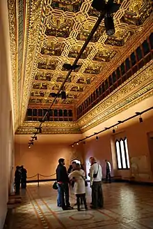 The Golden Hall had at its east and west ends two private bedrooms, possibly for royal use. Today the bedroom on the western flank has been lost, but it was used as a royal bedroom and also used by the Aragonese kings until the 14th century.