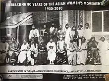 The All-Asian Women's Conference (AAWC) was a women's conference convened in Lahore in January 1931. It was the first pan-Asian women's conference of its kind.[1] Dominated by Indian organizers, "the AAWC was a vehicle for Indian women to voice their ideas and vision of an Indian-centred Asia".[2] Its predecessor, the All Indian Women's Conference (AIWC), aimed to examine areas of education and legislation to improve the position of women.[3] Like the AIWC, the AAWC aimed to expand this agenda in order to include women in Asia's vision for independence.