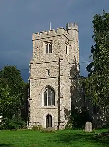 The earliest known reference to the existence of the church comes in a document dating to some time between 1136 and 1142, which records it being given to Walden Abbey by Geoffrey de Mandeville.[1] It was completely rebuilt in the 15th century, and has undergone many significant alterations since.[1] In 1772 the exterior was clad in brick and all the tracery, except that of the chancel, was replaced with wooden window frames. William Robinson, an early 19th-century historian of Edmonton, attributed the nature of the work to the fact that one of the churchwardens was a bricklayer, and the other a carpenter. When Robinson described the church, it had only one aisle, on the north side of the nave.[2]