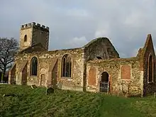 All Saints Church, Segenhoe is a ruined medieval church located near the village of Ridgmont, Bedfordshire. It contains architectural details that range from the 11th century when it was first built to the 19th century. The church was abandoned in 1855 when a larger church was built in Ridgmont. The cemetery continues to be used for burials. The church is managed by Central Bedfordshire Council. All Saints Church is designated a scheduled Ancient Monument.