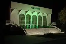 An auditorium is present next to the administration department, with the façade on the library side. With tiered seating, the auditorium holds an audience of 1000. A weekly clinicopathological conference, most of the scientific meetings, seminars & symposia and important lectures and addresses take place in this building. During the sports week it is the site for all the literary events and Annual Interclass Skit Competitions.