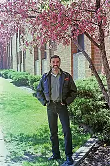 He was an English literature major at the University of Chicago from 1964 to 1968, but did not earn a degree,[lower-alpha 1] dropping out in what he later described as a panic based on the political turmoil of 1968, confronting his sexuality, anxiety about paying for his education, and guilt about breaking with his working-class background.[3] He moved to Boston and there he became involved in politics for the first time, working with the American Friends Service Committee in opposition to the Vietnam War.[7] He came out as gay in 1969.[5]