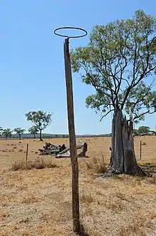An early netball hoop is located at the north end of the playing field. It comprises a roughly-hewn timber post, with a metal hoop fixed to the top.[1]
