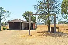 Sandy Creek remained a bustling agricultural centre in the late nineteenth century with three hotels.[41][42] In 1899 a small, timber Anglican Church, St Matthews, was constructed adjacent to the school.[43] When the South-Western railway line was extended from Warwick to Goondiwindi in 1904, a railway siding was built to Sandy Creek. It was, however, named Allan railway station rather than Sandy Creek. Its namesake was William Allan (1840–1901), successful Sandy Creek district pastoralist and well-respected Parliamentarian.[44][45][46] In 1917 a community hall, the Allies Hall, was constructed in Sandy Creek which became the centre for social activities in the district for several decades.[47] The hall is no longer extant.[1]