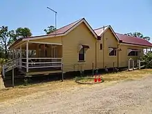 The establishment of schools was considered an essential step in the development of early communities and integral to their success. Following the introduction of the Education Act 1860, which established the Board of General Education and began standardising curriculum, training and facilities, Queensland's national and public schools grew from four in 1860 to 230 by 1875.[16] Locals often donated land and labour for a school's construction and the school community contributed to maintenance and development. Schools became a community focus, a symbol of progress, and a source of pride, with enduring connections formed with past pupils, parents, and teachers.[17][18][19][1]
