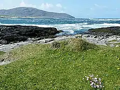 Machair, close to the sea at Allasdale, has Bird's Foot Trefoil and Thrift to provide some colour