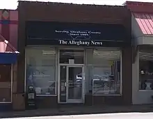 The Alleghany News is a weekly newspaper, published in Sparta, North Carolina, United States.[1] The newspaper is locally owned by Alleghany Holdings, LLC. The paper has its origins in The Alleghany Star, which was first published in 1889, by a man named A. S. Carson.[2] In the 1930s, the Alleghany Star merged with Alleghany Times and became Alleghany News.[3] As of 2016 the publisher of the paper was Coby Larue and the editor was Bob Bamberg.[4]