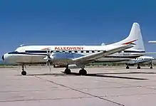 Flight 736 was operated using a Convair CV-580 (registration number N5802). The aircraft was originally certificated as a Convair CV-440 on March 4, 1957, but was modified to include upgraded turbine engines and propellers and re-certificated as a CV-580 on May 25, 1965. At the time of the accident, the aircraft had accumulated a total of 29,173 flight hours.[1]: (Appendix C) The CV-580 was flown by Captain Gary Lee Mull, aged 33, and first officer Richard Bruce Gardner, aged 30.[1]: (Appendix B)
