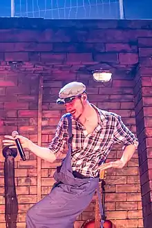 Lukas Strobel grew up in Neuenwalde, a town near Bremerhaven in Lower Saxony. During his time at school he produced a number of short films and attended a film festival where he won 750 Euros for one of his films. Strobel continues to produce his videos. On April 10, 2006 Strobel founded the band Alligatoah and created two alter egos, to separate his function as a rapper (Kaliba 69) and as a producer (DJ Deagle). According to Strobel himself, another reason for the creation of the two characters is that he does not always "want to be alone" when making music.[2] The greatest influence for his music was German battle rap like Aggro Berlin. In 2006 he released his first album ATTNTAAT and a mixtape called Schlaftabletten, Rotwein Teil I. Both albums, along with his music film Goldfieber, were downloadable for free. In 2007 he published the mixtape Schlaftabletten, Rotwein Teil II. In March 2008 he signed a contract with the German hip hop label rappers.in. Under this label he released the album In Gottes Namen, which was awarded the best demo of the month in the January/February issue of the German hip hop magazine Juice. For this issue Alligatoah produced an exclusive track.[3] After successfully graduating from high school, Strobel moved to Berlin. In 2011 he released the third part of his mixtape named Schlaftabletten, Rotwein Teil III. In August of the same year he left rappers.in and joined the label Trailerpark after Timi Hendrix, a member of this label, recommended Alligatoah.[4] From September 2011 until March 2012 he attended together with Pimpulsiv, Sudden and DNP the PeppNoseDay Tour in Germany.[5]