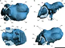 - 1 2 Witmer, L.M.; Chatterjee, S.; Franzosa, J.; Rowe, T. (2003). "Neuroanatomy of flying reptiles and implications for flight, posture and behaviour" (PDF). Nature. 425 (6961): 950–953. Bibcode:2003Natur.425..950W. doi:10.1038/nature02048. PMID 14586467. S2CID 4431861.