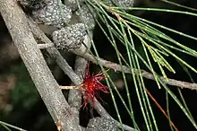 Allocasuarina littoralis, commonly known as black she-oak,[3] is a species of flowering plant in the family Casuarinaceae and is endemic to eastern Australia. It is dioecious, or less commonly a monoecious tree or shrub, that has its leaves reduced to scales, usually in whorls of six to eight, the mature fruiting cones 10–30 mm (0.39–1.18 in) long containing winged seeds (samaras) 4.0–10 mm (0.16–0.39 in) long.
