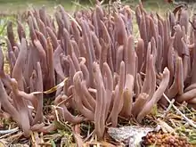 - ↑ Dentinger, B.T.M.; McLaughlin, D.J.' (2006). "Reconstructing the Clavariaceae using nuclear large subunit rDNA sequences and a new genus segregated from Clavaria". Mycologia. 98 (5): 746–762. doi:10.3852/mycologia.98.5.746. PMID 17256578.