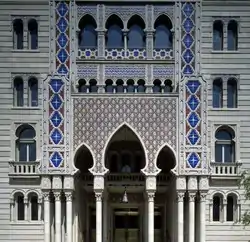 The Almas Temple is a Masonic building facing Franklin Square at 1315 K St NW in Washington, D.C. It houses Almas Shrine, a sub-group for Shriner's International whose headquarters is located in Tampa, Florida. The edifice is in the Moorish architectural style and features an elaborate, multicolored terra-cotta façade. It was constructed in 1929 by Allen H. Potts, a member of the temple.[1]